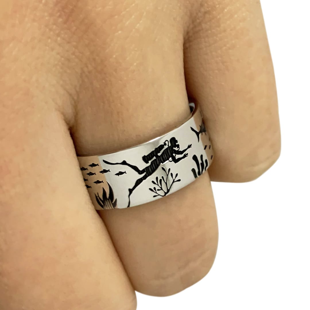 Scuba Diver Band Ring In Sterling Silver Metal Sea Band Ring Etsy Uk